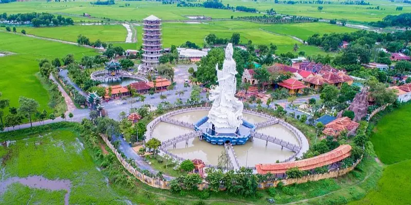 Tượng Quan Thế Âm khổng lồ ngoài trời, ở giữa hồ nước là hình ảnh rất ấn tượng với du khách thập phương.