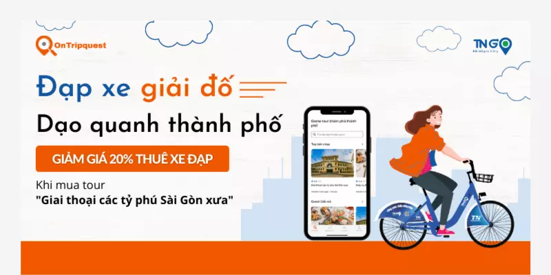 Đặc biệt, khi bạn đặt tour "Giai thoại các tỷ phú Sài Gòn xưa" của OnTripquest, bạn sẽ được nhận ngay mã giảm giá 20% cho dịch vụ xe đạp công cộng TNGo. Còn chần chừ gì nữa mà không nhanh tay đặt tour ngay để khám phá quận 1 cùng OnTripquest và TNGo nào!